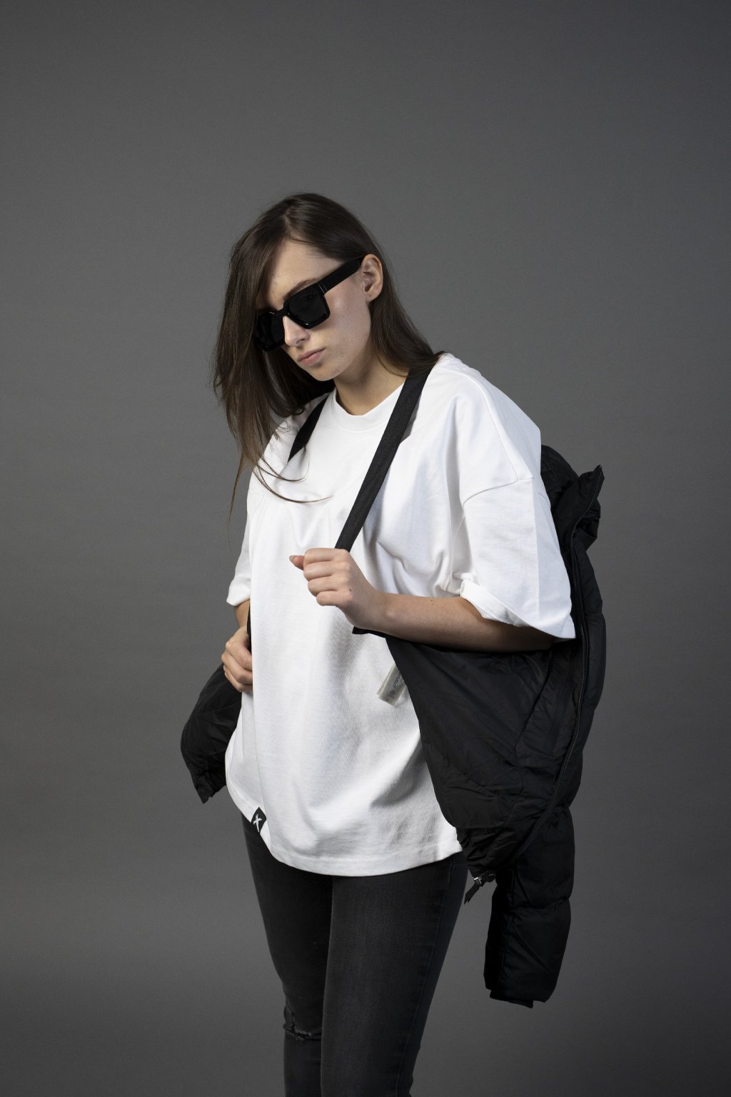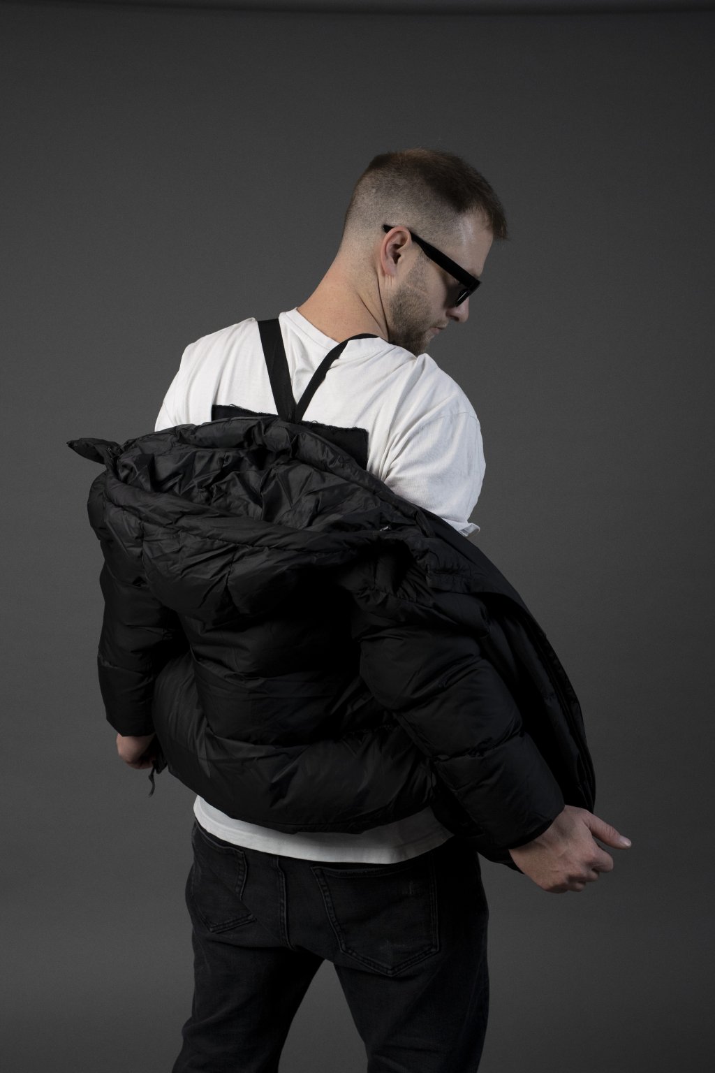 Pásky uvnitř – umožňují nosit bundu bez použití rukou (hands-free) - třeba v obchodáku
